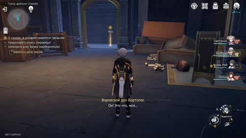 Оно стартует автоматически сразу же после прохождения предыдущей миссии цепочки под названием «О свитки, смотрел ли клинок назад». Если этого не случилось, то попробуйте выйти из учетной записи, подождать 20-30 минут и перезайти. Повествование перейдет к Цифер и Бартолосу, которые ищут сокровища в Стиксии.