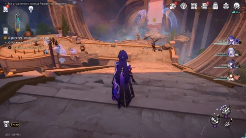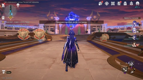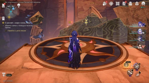 Затем вы встретите Кениду. Можете выбирать любые ответы, так как они ни на что не повлияют. Далее вам предстоит решить небольшую головоломку «Ларь ядра и тайный замок». Взаимодействуйте с ларцом, и он тут же опустится вниз. Теперь возьмите в свой отряд Первопроходца (Памяти), так как его техника (клавиша «Е») по остановке времени будет весьма кстати.