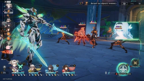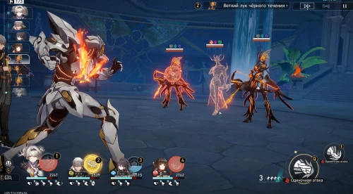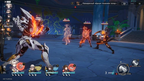 Решив головоломку, подойдите к ядру. Послушайте диалог, а потом вступите в схватку с монстрами черного течения – их уязвимости продемонстрированы на скриншотах ниже. В конце вас ждет битва с элитным врагом, поэтому советуем взять свою лучшую команду.