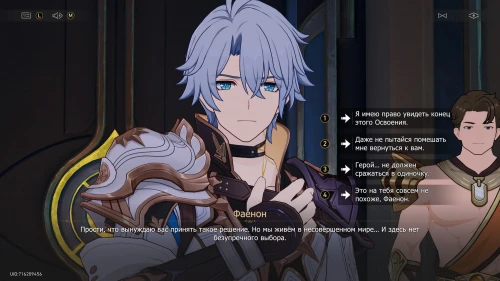 Пройдите к подъемнику и спуститесь вниз в общие купальни. Снова появится Похититель пламени, но его решит задержать Дань Хэн, который превратится в Пожирателя луны. Идите в свои личные купальни и вновь поговорите с Фаеноном. Он захочет отправить нас обратно на Звездный экспресс. Можете выбирать любые ответы, так как они лишь слегка изменят диалог.