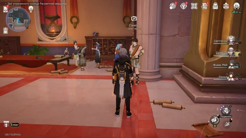 Разобравшись с указанными требованиями, переместитесь к якорю «Священный путь зари» в южной части локации Зал утраченного солнца Рассветной вершины. Затем тут же поверните налево, поднимитесь по лесенке и войдите в здание с выжившими. Далее поверните направо и поболтайте с Гликоном. Согласитесь помочь ему для старта миссии.