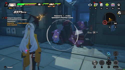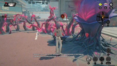 Подойдите к большому растению, распространяющему скверну в округе. Вам необходимо будет сначала уничтожить 3 его сгустка, после чего можно будет взорвать уже само ядро, наведя на него камеру и быстро нажимая на клавишу «F». Весь процесс продемонстрирован на гифке ниже.