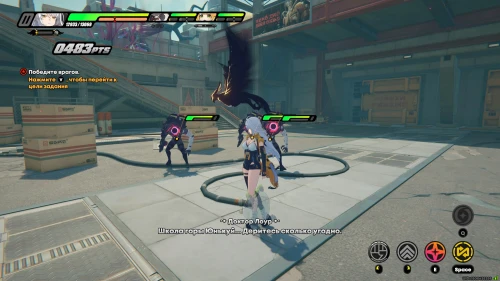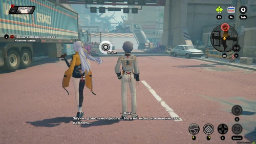 Подойдите к Сотруднице канатной дороги, а затем подберите отряд. Советуем вам взять своих самых сильных персонажей (но не берите Электро дамагеров, так как босс устойчив к этой стихии), ведь вас ждет немало сражений с врагами. Итак, вы переместитесь в Центральную промзону – пообщайтесь здесь с Фуфу. Она расскажет о необходимости сбора ресурсов.