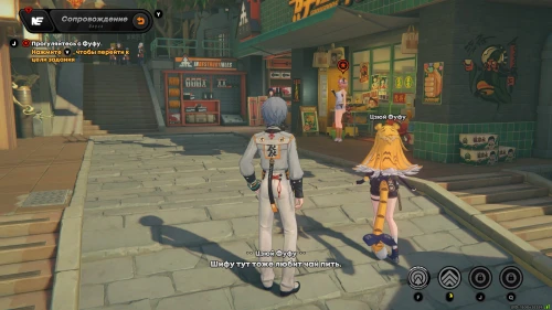 Вы наконец-то попадете на полуостров Вайфэй. Подойдите к Фуфу и начните следовать за ней и посмотрите достопримечательности, а потом сядьте в кабинку и спуститесь вниз. Снова пообщайтесь с кошечкой. Продолжайте расспрашивать ее о данном районе и посетите разные магазинчики.