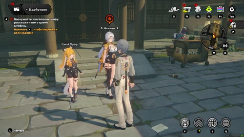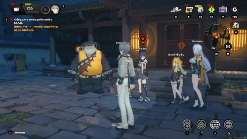 Вы окажитесь в новой локации – Старый рабочий поселок – и получите команду, состоящую из пробных персонажей: Инсюань (мейн-ДД), Цзюй Фуфу (сад-ДД) и Пань Иньху (саппорт). Пройдите немного вперед и разберитесь с первой группой эфириалов.