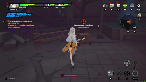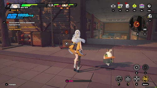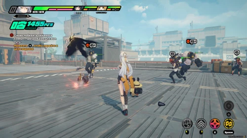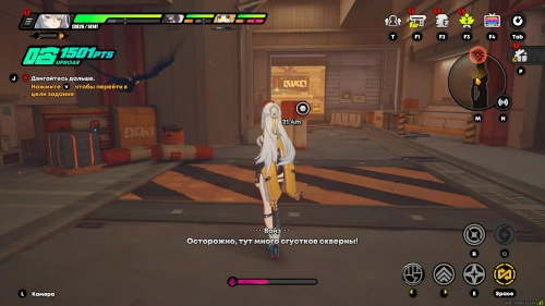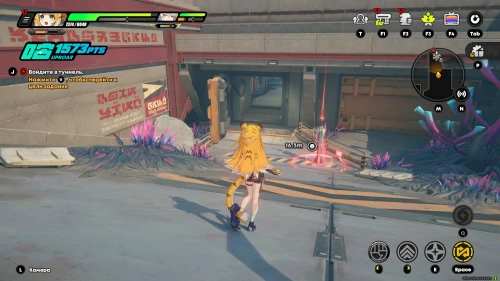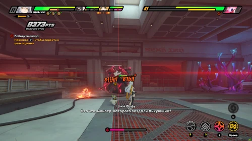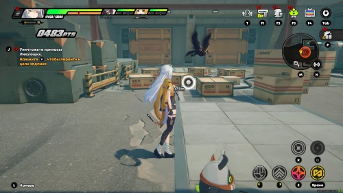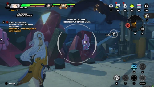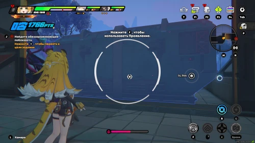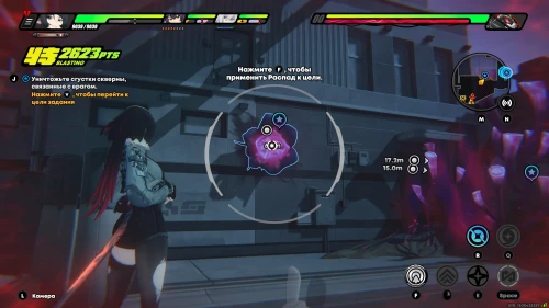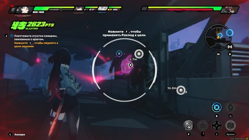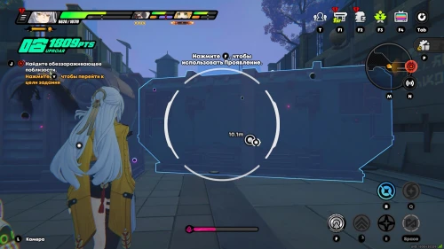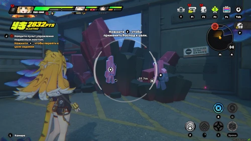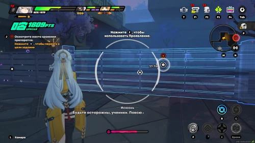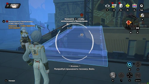 Теперь подойдите к пульту управления справа и откройте дверь. Выйдите наружу и бегите к маркеру, где вы встретите Пань Иньху – поболтайте с ним. Продолжайте двигаться вперед к воротам и вступите в схватку с новыми врагами. Уничтожив их, поднимитесь на лифте наверх. Потом научитесь использовать технику «Распад». Нажмите клавишу «R», наведите камеру на подсвеченный кристалл и зажмите «F» для его уничтожения.
