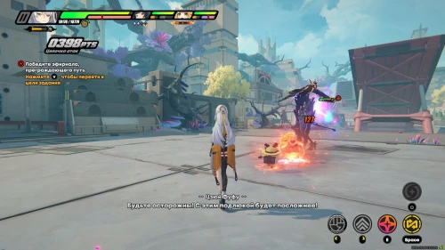 Ваш дирижабль собьют и стартует боевой заказ. Управляя прокси, бегите вперед к шипам. Подойдите к странному растению и взаимодействуйте с ним. Затем поверните направо и поднимитесь по лестнице наверх. Продолжайте следовать за квестовым маркером, пока не столкнетесь с врагами. Появится Исюань и спасет вас.