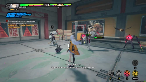 К счастью, вам не нужно пока что убивать его – достаточно будет пробить его щит (фиолетовая полоска под его шкалой здоровья). Отпугнув врага, поднимитесь по лестнице наверх, а потом воспользуйтесь лифтом. Поднявшись на следующий этаж, разберитесь со всеми бандитами и возьмите под контроль визуальную сингулярность. Тем самым вы увидите расположение всех мини-грузовиков в области.
