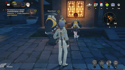 Внезапно вы услышите шум на улице – подойдите к сотруднику ТОП. Послушав о проблеме и поговорив с Фуфу о кошках и тиграх, найдите ее рядом с оградой и полюбуйтесь видом. Затем бегите к входу в храм и войдите внутрь. Познакомившись с другими учениками, снова побеседуйте с Инсюань.