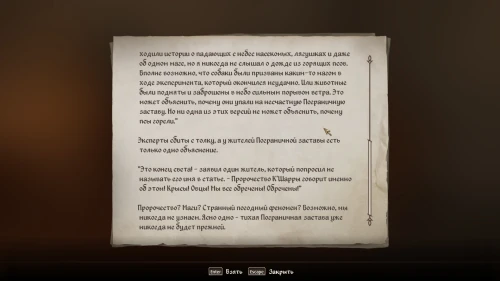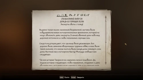 Чуть позднее после завершения квеста, вы сможете найти в игре забавную заметку Вороного курьера про дождь из горящих псов.