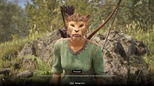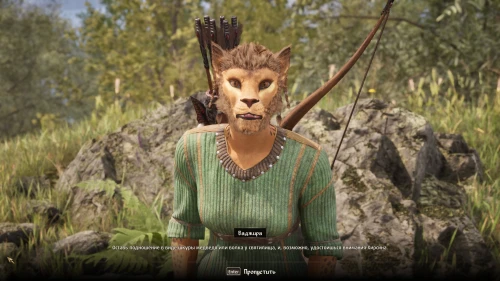 Добравшись до святилища принца Охоты, потолкуйте с его последовательницей Ваджирой (Vajhira). Каджитка поведает вам о необходимости принести к алтарю Хирсина Шкуру волка или медведя (Wolf or Bear pelt).