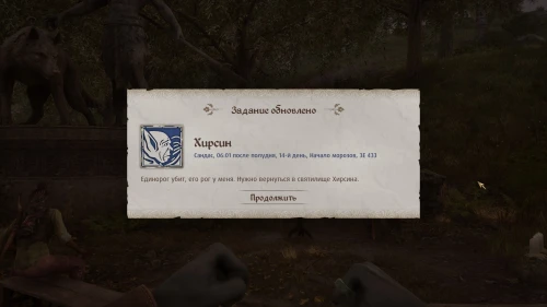 После того как необходимое подношение окажется у вас на руках, активируйте статую Хирсина и выслушайте его задание. Вам придется отправиться в рощу Харкейн (Harcane Grove) и добыть редкий трофей — рог единорога (Unicorn Horn).