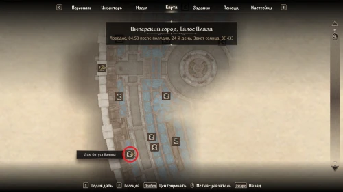 Получить метку на карте можно после разговора с Онтусом Ванином (Ontus Vanin) из Имперского города. Отыскать его вы можете после двух часов дня в Торговом районе Имперского города или же в его доме, в районе Талос Плаза (Talos Plaza District). До 10 утра он обычно находится в своей постели.