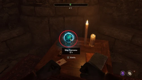 В этой же комнате на столе заберите шар Вермины и прочитайте записку Аркведа, чтобы узнать, зачем он присвоил себе данный артефакт. Выйти наружу вы сможете через следующую дверь.