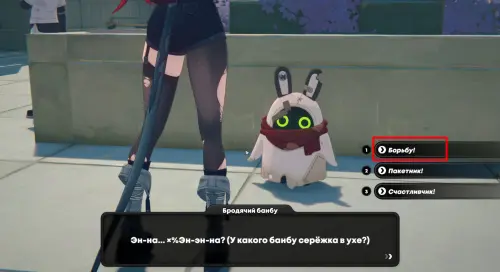 Сразу после беседы с Фасолькой, развернитесь и поверните камеру влево, чтобы увидеть перед собой сотрудника АИК. Он расскажет вам о странном банбу и захочет, чтобы вы пообщались с этим необычным «кроликом».