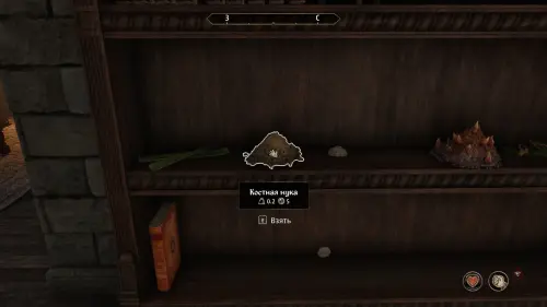 Костяная мука находится на полке на втором этаже Гильдии магов Скинграда.