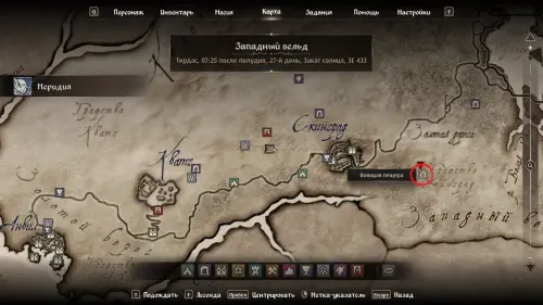 Если вы ранее не посещали данное место, то после разговора с Меридией, на вашей карте появится маркер Воющей пещеры (Howling Cave).