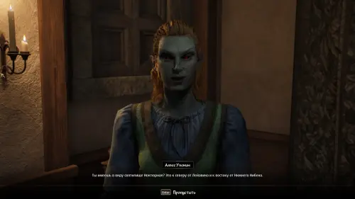 По завершении диалога, следуйте в дом Вибам-на (Weebam-Na) и поговорите с любым из двух аргониан. В любом случае никто из них не признается в краже и вам придется покинуть дом. Перейдите в скрытный режим и зайдите обратно, чтобы стриггерить разговор между ворами.