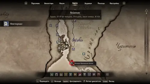 Святилище Ноктюрнал (Nocturnal Shrine) находится к северу от Лейавина (Leyawiin). Получить маркер вы сможете, поговорив с Алвес Увеним (Alves Uvenim) из Гильдии Магов Лейавина о Святилищах Даэдра.