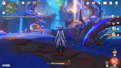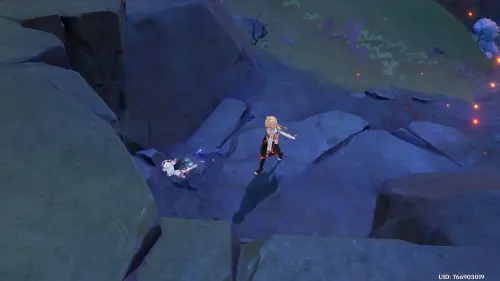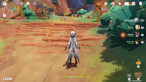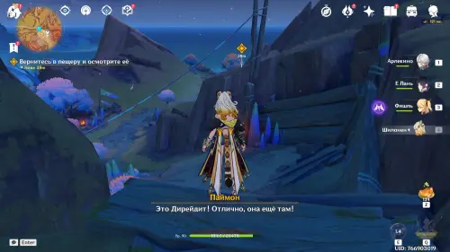 Далее начните двигаться на восток в сторону выделенной области и пройдите к склону. Спуститесь немного вниз, и вы неожиданно обнаружите здесь вход в пещеру – пройдите в него. Внутри вы найдете хиличурла, который обронит ключ от камеры гибернации в космическом корабле. Судя по всему, его потеряла сестра/брат протагониста.