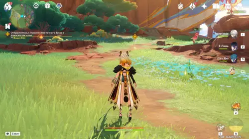 Переместитесь к статуе Пиро Архонта в Атокпане и двигайтесь в сторону маркера. На дороге вы обнаружите Иансан – пообщайтесь с ней. Вы согласитесь помочь ей с патрулированием окрестностей.