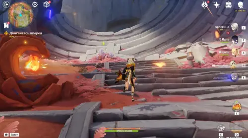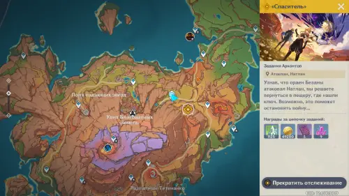 На следующий день вы найдете Дайна уже в самом поселении. Вы узнаете, что главный штаб ордена Бездны находится в Очканатлане. Отправляйтесь туда вместе со своим другом, чтобы разбить силы противника. Переместившись к статуе Пиро архонта в указанной области, коснитесь портала для перехода в сюжетный режим.