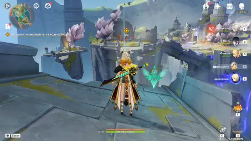 Итак двигайтесь вперед и перелетите на основной остров, а затем вступите в схватку с Пиро и Гидро магами Бездны. Разобравшись с ними, бегите дальше, и вы увидите первый подсвечник мрака здесь – напомним, что он съедает энергию ваших персонажей и защищает барьером монстров. Для их быстрого уничтожения сначала вызывайте Дайна, чтобы он убрал щит, а затем уже бейте объект сами.