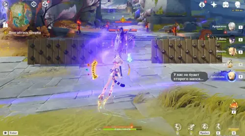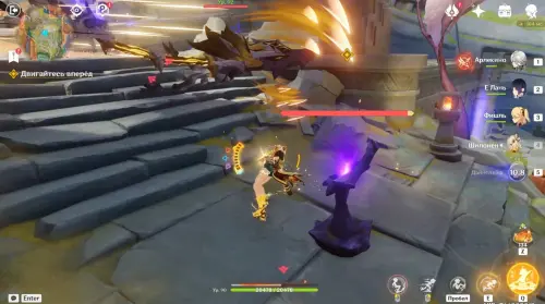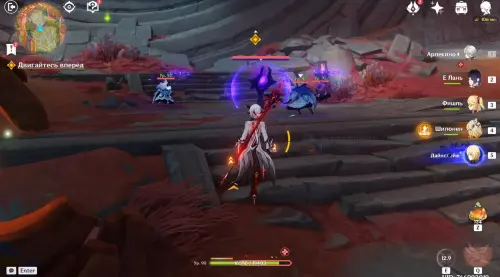 Когда вы уничтожите подсвечник, внезапно появится элитный враг – Гидро Вестник Бездны. Как только его здоровье упадет до 15-20%, он создаст мощный Гидро щит. В этот момент атаковать его следует Пиро, Крио (приоритет) или Электро атаками, чтобы разрушить барьер и добить врага. Снова пообщайтесь с друзьями.
