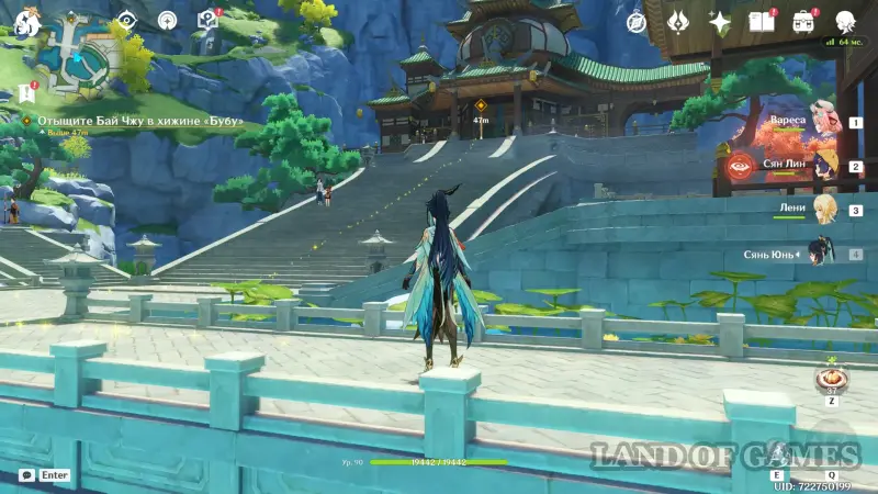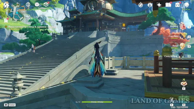 Переместитесь на север Ли Юэ и поднимайтесь по ступенькам к лечебному заведению, а после разговора с пожилой НПС поверните направо и зайдите в здание через боковой вход.