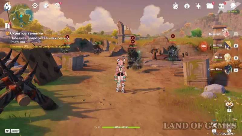 Решившись на сотрудничество со Скирк, отправляйтесь в долину Гуйли, расположенную к югу от постоялого двора «Ваншу». Подойдя к квестовому маркеру, вы наткнетесь на стаю гончих Разрыва. Разберитесь с первой группой монстров, после чего наблюдайте, как Скирк сама расправится с оставшимися врагами.