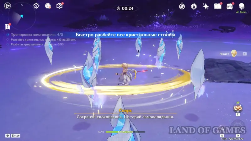 Чтобы ускорить прохождение первого этапа подготовки, используйте заряженные атаки в скоплении целей и Е-шку огненного элемента (клинки пламени домажут по площади, пока находятся на ГГ).