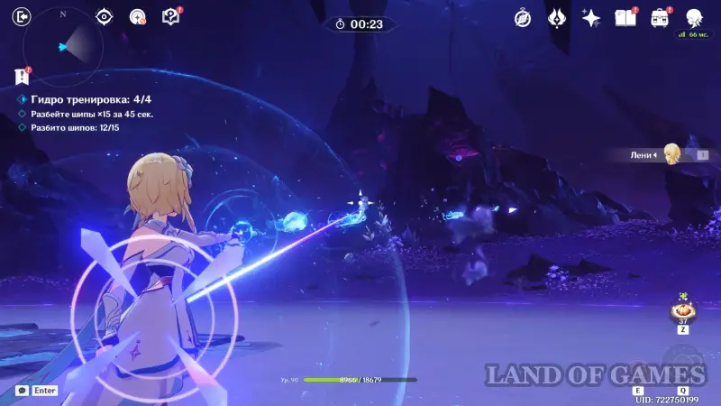 - Избегайте прицельных атак шипами или разрушайте их выстрелами Гидро Путешественника, если они мешают передвижению и атаке во время боя.