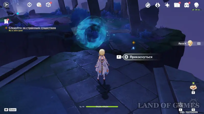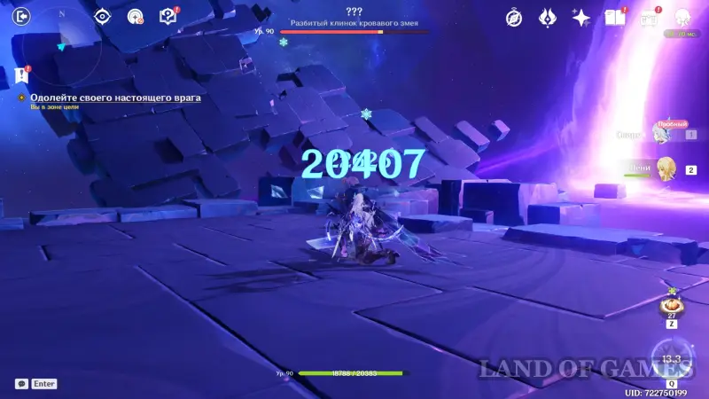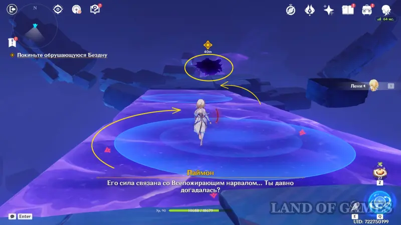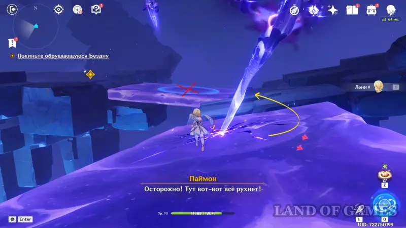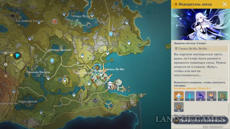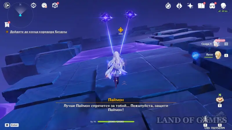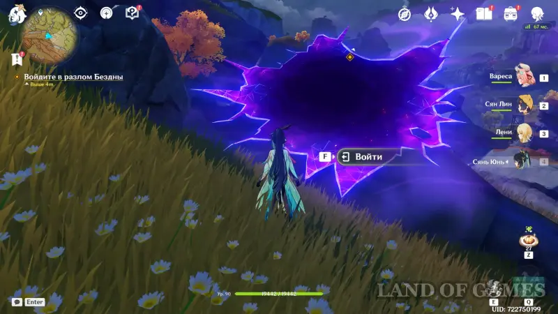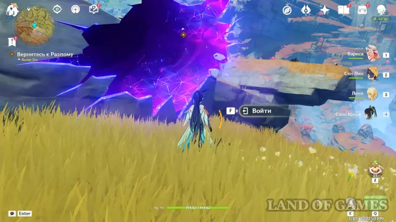 Чтобы попасть в укрытие врага, переместитесь ближе к квестовой метке в ущелье Фуао (Разлом, Ли Юэ). Озвучив несколько предостережений, Скирк откроет разлом Бездны, ведущий в пространство, где была похищена часть души Путешественника.