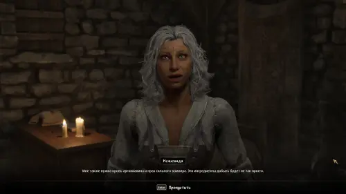 Мелисанда перечислит, что и в каких количествах, вам нужно найти для приготовления зелья. Также вы сможете узнать подробнее про каждый отдельный ингредиент в диалоге с ведьмой.