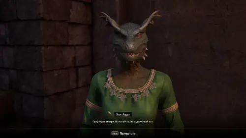 Когда задание обновится, следуйте в замок Скинграда (Castle Skingrad) и поговорите с управляющей Хал-Лиурз (Hal-Liurz). Расскажите аргонианке о цели вашего визита, и она попросит вас подождать графа в холле.