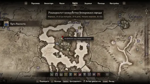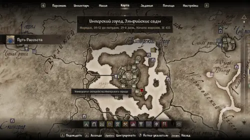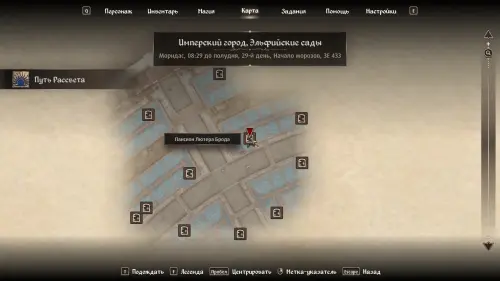 Нужное место, указанное в книгах, будет находиться в локации Дворец Имперского сада. Переместитесь туда и просто следуйте за квестовым маркером, который будет указывать на Гробницу принца Камарилла (Tomb of Prince Camarril) с высеченной на ней картой Сиродила.