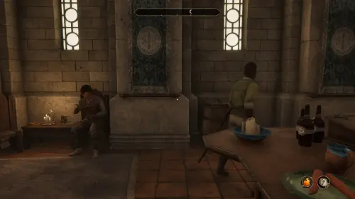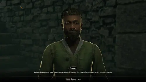 Присядьте рядом с ним и начните диалог. Баурус намекнет на то, что за ним ведется слежка и предложит вам следующий план действий: когда он спустится в подвал, подозреваемый Астав Вирич (Astav Wirich) отправится за ним, и вам придется идти следом.
