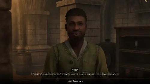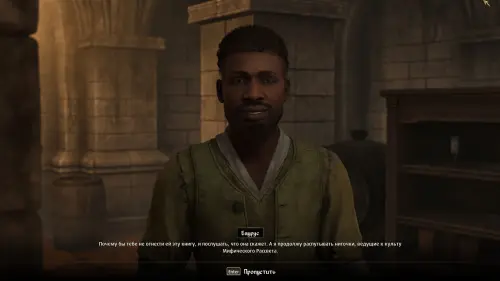 По завершении диалога Баурус выйдет из-за стола и направится к входу в подвал. Как и предполагал редгард — шпион пойдет следом за ним. В подвале пансиона культист накинется на редгарда, и вам придется вместе расправиться с врагом.