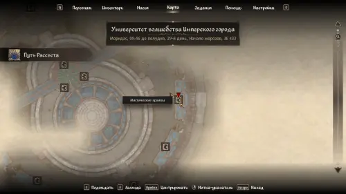 Получив квестовый предмет, переговорите с Баурусом, который посоветует вам вновь посетить Университет волшебства.
