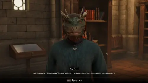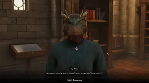 Расспросите ее о культистах рассвета и их лидере — Манкаре Каморане (Mankar Camoran). Тар-Мина расскажет о необходимости получения всех четырех томов комментариев о Мифическом рассвете, известных также как комментарии Мистериума Заркса (Mysterium Xarxes). Только с их помощью вы сможете отыскать путь в святилище поклонников Мерунеса Дагона.