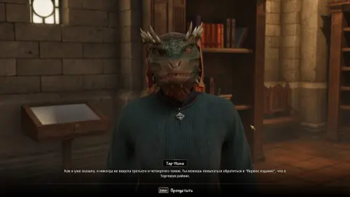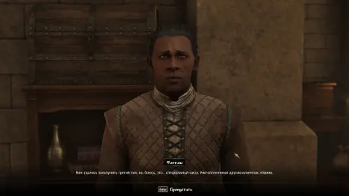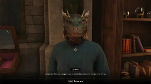 Направляйтесь в «Первое издание» и потолкуйте с Финтиасом о Мистериуме Заркса. Торговец с сожалением расскажет вам о том, что третья книга уже оплачена другим покупателем — Гвинасом (Gwinas) и тот должен прийти за ней с минуты на минуту. Четвертой же книги у него не имеется.