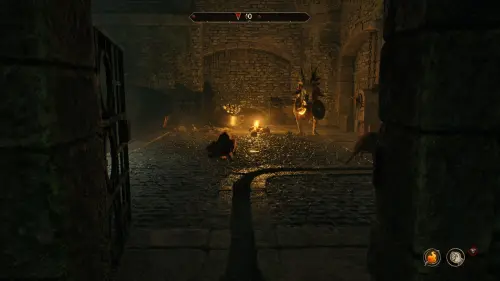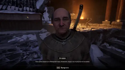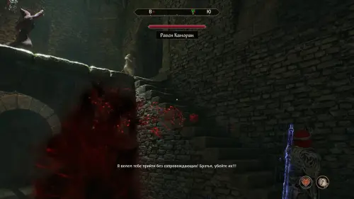 Также вы можете выпросить у клинка самостоятельно пойти на встречу, однако тот не сразу примет ваше предложение. Зайдите в комнату и сядьте за стол. Но и в этом случае двое остальных смогут заметить Бауруса, скрывающегося на верхнем мосту. Так что при любом раскладе битвы вам не избежать.