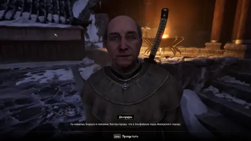 После прибытия в Храм Повелителя Облаков, выслушайте речь Мартина и потолкуйте с Джоффри, чтобы понять, с чего начать поиски пропавшего Амулета. Он отправит вас к Баурусу — одному из верных защитников убитого императора.