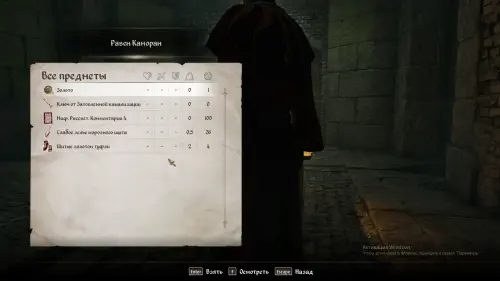 Заберите с тела Равена Мифический Рассвет, комментарии 4 (Mythic Dawn Commentaries 4) и ключ от затопленной канализации (key to the Sunken Sewers).