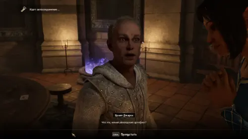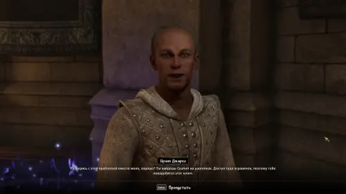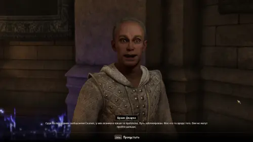Начните диалог с Ирлавом, и он расскажет вам о том, что на раскопках его люди столкнулись с какими-то проблемами. Путь оказался заблокирован, и они не могут продолжить свои исследования.