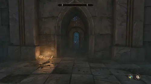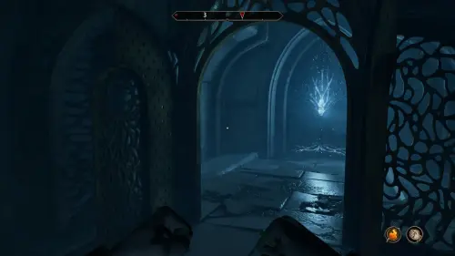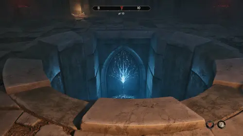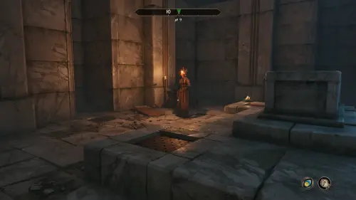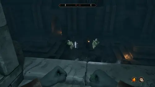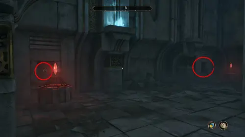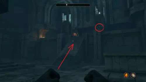 Однако, получив заветный артефакт, в комнате появится дополнительная нежить. Разобравшись с врагами, вновь поднимитесь по лестнице и пройдите через открывшийся проход прямо к двери, ведущей обратно в зал с колонной.