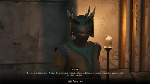 Выбравшись из руин, поговорите со Скалил. Она похвалит вас за отличную работу и попросит отнести шлем Ирлаву для дополнительного изучения.