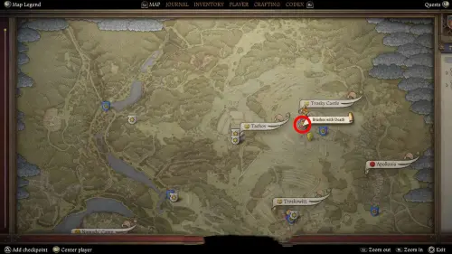 Переместитесь к точке быстрого путешествия «Видлакский пруд», расположенный чуть западнее Тахова. Затем двигайтесь на юг, и на небольшом участке неподалеку от водоема вы обнаружите старую женщину по имени Кветослава – поболтайте с ней.