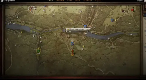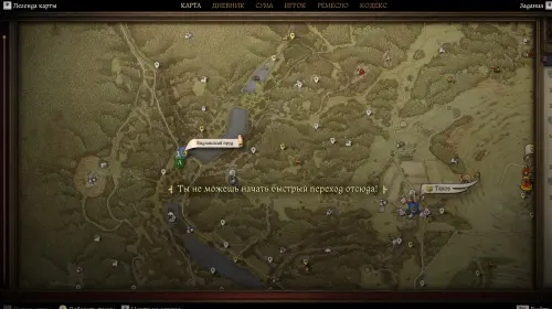 Сразу отметим, что осматривать все 3 места, которые вам назвала Кветослава, необязательно, так как в двух из них вы попросту ничего не найдете, так что можете сразу отправляться в выделенную зону с подписью «Обыскать речку, что впадает в нижний семинский пруд». Она отмечена буквой «F» и находится к юго-западу от Небаковской крепости.