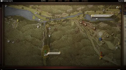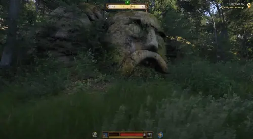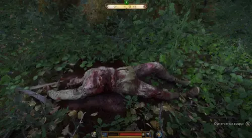Идите по дороге вглубь леса, пока не доберетесь до Языческого капища. Здесь вы обнаружите огромный валун в форме лица. Подойдите к нему и нажмите клавишу «LAlt», чтобы осмотреться вокруг. В результате вы обнаружите на земле труп, который тоже необходимо осмотреть.